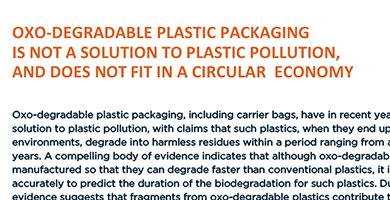 Oxo-degradable plastic packaging is not a solution to plastic pollution, and does not fit in a circular economy